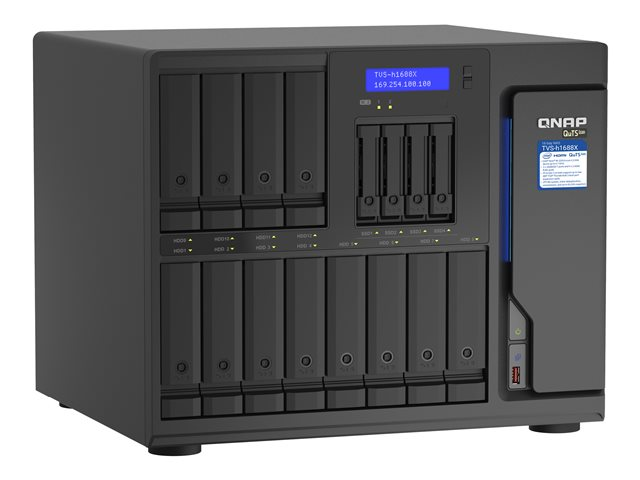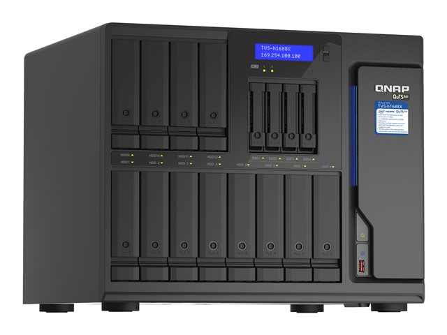 QNAP TVS-H1688X - NAS-server - 16 fack - SATA 6Gb/s - RAID 0, 1, 5, 6, 10, 50, JBOD, 5 hot spare, 6-reservsnabbyte, 60, 10 hot spare, RAID TP - RAM 32 GB - Gigabit Ethernet / 2.5 Gigabit Ethernet / 10 Gigabit Ethernet - iSCSI support