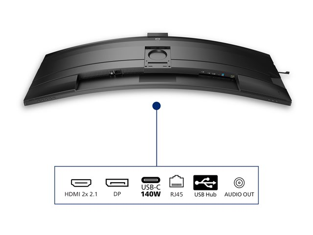 | Gränssnitt | DisplayPort 1.4 (HDCP 1.4, HDCP 2.2) 2 x HDMI (HDCP 1.4, HDCP 2.2) USB-C uppström (HDCP 1,4, HDCP 2,2, DisplayPort altläge, ström upp till 100 W) USB-C 3.2 nedströms (ström upp till 15 W) USB-B 3.2 Gen 1 uppströms 2 x USB 3.2 Gen 1 nedströms Hörlurs-/mikrofonkontakt (minijack) LAN (RJ-45) |