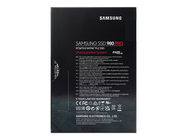 Samsung 980 PRO MZ-V8P500BW - SSD - krypterat - 500 GB - inbyggd - M.2 2280 - PCIe 4.0 x4 (NVMe) - buffert: 512 MB - 256 bitars AES - TCG Opal Encryption - för Intel Next Unit of Computing 13 Extreme Kit - NUC13RNGi5, 13 Extreme Kit - NUC13RNGi7