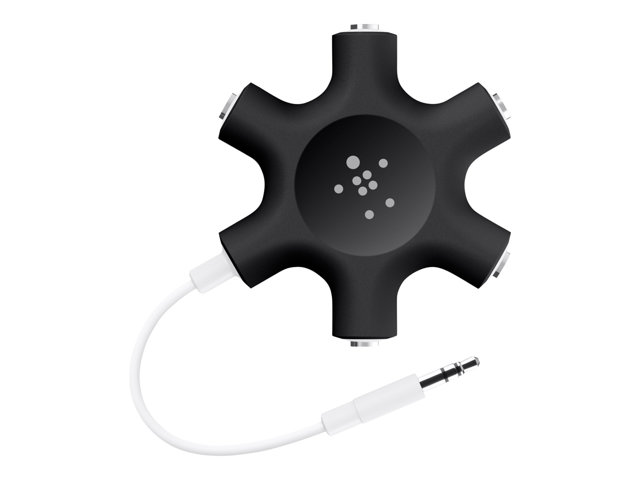 The only thing better than listening to your favorite song or watching your favorite show or movie is sharing the experience with your friends and family. The Belkin RockStar makes it easy. Just plug in any mobile device with music or movies on it - such as your iPad, phone or tablet - connect up to five headphones, and start sharing. It works with all devices with an auxiliary port. Even better, the sound and volume maintain the same level of quality, regardless of how many devices are connected.