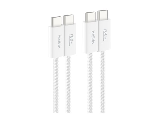 Belkin BoostCharge - USB-kabel - USB-C (hane) till USB-C (hane) - 1.5 m - Snabbladdning upp till 60 W - vit (paket om 2)