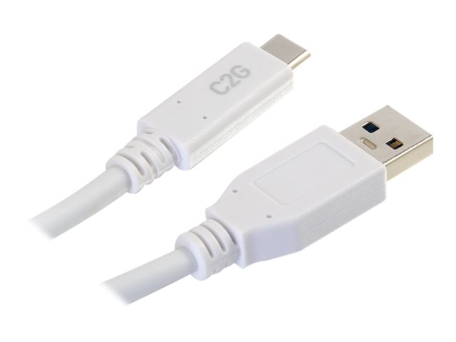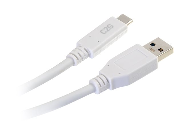 C2G 6ft USB C to USB A Cable - USB 3.2 - 5Gbps - White - M/M - USB-kabel - USB typ A (hane) till USB-C (hane) - USB 3.1 - 30 V - 3 A - 1.83 m - vit