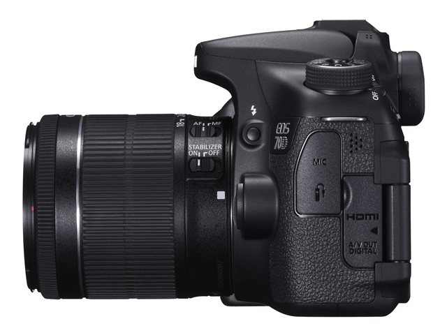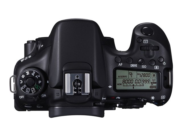 Ytterligare funktionerRGB primärt färgfilter, automatisk effektsparande, knapp för förhandsvisning av djupskärpa, avkänningsfunktion för kameraorientering, exponeringsmätare, storleksändra en bild, förberedd för GPS, visning av belyst punkt, inbyggd hjälp, autobelysningsoptimerare, RAW-bearbetning i kamera, perifer belysningskorrigering, CAC (Chromatic Aberration Compensation), Multi-Frame-brusreducering, HDR-bildförbättringsteknik, Eye-Fi Card Ready, Scene Intelligent Auto-teknik, brusreducering vid lång exponering, hög ISO-hastighetsbrusreducering, Dual Pixel CMOS AF-teknologi