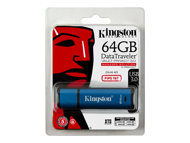 Kingston's DataTraveler Vault Privacy 3.0 (DTVP 3.0) USB flash drive provides affordable business-grade security with 256-bit AES hardware-based encryption using XTS block cipher mode, which offers stronger protection than CBC and ECB modes. It protects 100 per cent of stored data and enforces complex password protection with minimum characteristics to prevent unauthorized access. For additional peace of mind, the drive locks down and reformats after 10 intrusion attempts. It also features a read-only access mode to avoid potential malware risks.
