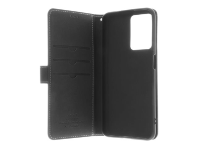Insmat - Vikbart fodral för mobiltelefon - genuint läder, termoplastisk polyuretan (TPU), kartong+papper+aluminiumfolie, bomullssömmar - svart - för OPPO A76