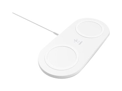 Belkin BoostCharge Dual - Trådlös laddningsplatta + växelströmsadapter - 15 Watt - vit - för Apple iPhone 11, 11 Pro, 11 Pro Max, 8, 8 Plus, X, XR, XS, XS Max; Samsung Galaxy Note10, Note10+, S10, S10+, S10e
