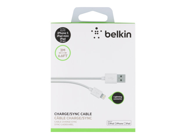 Belkin Charge/Sync Cable - Lightning-kabel - Lightning hane till USB hane - 2 m - vit