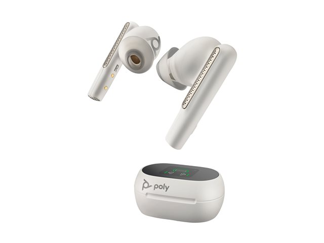 HP Poly Voyager Free 60+ UC M - True wireless-hörlurar med mikrofon - inuti örat - Bluetooth - aktiv brusradering - USB-C via Bluetooth-adapter - sandvit - Certifierad för Microsoft-teams