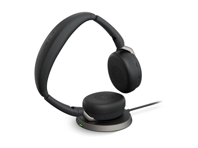 Jabra Evolve2 65 Flex MS Stereo - Headset - på örat - Bluetooth - trådlös - aktiv brusradering - USB-A - svart - med trådlös laddningsplatta - Certifierad för Microsoft-teams