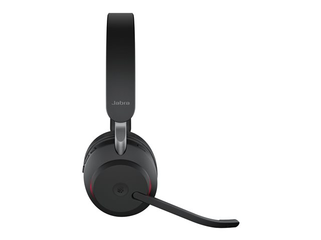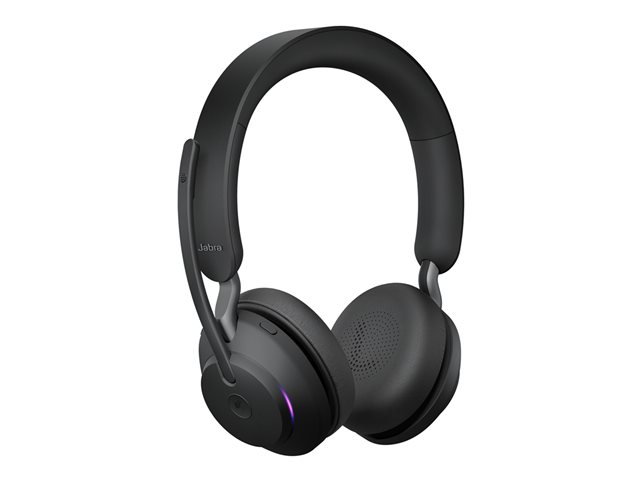 Jabra Evolve2 65 MS Stereo - Headset - på örat - Bluetooth - trådlös - USB-C - ljudisolerande - svart - med laddningsställ - Certifierad för Microsoft-teams