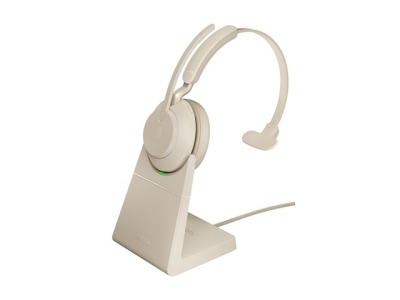 Jabra Evolve2 65 UC Mono - Headset - på örat - konvertibel - Bluetooth - trådlös - USB-C - ljudisolerande - beige - med laddningsställ 26599-889-888
