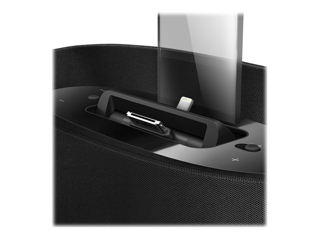 - DualDock för att ladda och spela från Apple-enheter (Lightning- och 30-stiftskontakter)