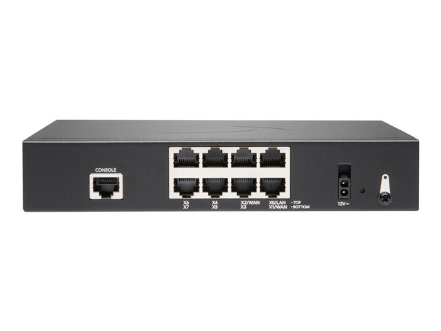 | Kapacitet | Virtuella gränssnitt (VLAN): 128 SSL VPN-licenser: 2 (max. 100) VPN-tunnlar (site-to-site): 100 IPSec VPN-klienter: 5 (max. 200) SPI-anslutningar: 900000 DPI-anslutningar: 200000 DPI SSL-anslutningar: 30000 Single Sign-On (SSO) användare: 1000 Administrerade åtkomstpunkter: 16 |