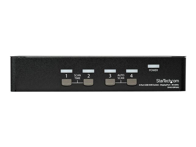 StarTech.com 4-ports DisplayPort KVM-switch med 4K 60 Hz upplösning - Omkopplare för tangentbord/video/mus/ljud - 4 x KVM/ljud - 1 lokal användare - skrivbordsmodell - Växelström 100 - 240 V SV431DPUA2