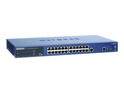 NETGEAR ProSafe Smart Switches fill the gap between unmanaged and fully managed switches. The family of ProSafe Smart Switches is designed for growing businesses that want control over their network without the cost and complexity of a full Layer 2/Layer 3-management implementation. This second generation Smart Switch, FS726T, with affordable built-in gigabit power, easily connects to servers or a Gigabit-speed backbone for a non-stop 10/100/1000-enabled network that can quickly deliver large multimedia, image, and video files. With the utility of 24 10/100 Mbps ports, 2 copper 10/100/1000 ports and an SFP slot for optional fiber connectivity, growing business networks, classrooms and workgroups can benefit from superior performance and keep up with expanding network needs. This high-performance switch features a non-blocking wire-speed architecture with an 8.8Gbps switching capacity for maximum data throughput. All 26 RJ-45 ports automatically negotiate to the highest speed and support Auto Uplink technology to make the right link.