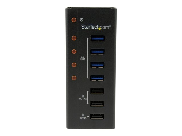 StarTech.com USB 3.0-hubb med 4 portar plus 3 dedicerade USB-laddningsportar (2x 1A & 1x 2A) ? väggmonterbart metallhölje - Hubb - 4 x SuperSpeed USB 3.0 - skrivbordsmodell - för P/N: PEXUSB3S3GE, SVA12M5NA, USB312SAT3CB, USB315CB2M, USBLT1MWS, USBLTM1MBK, USBLTM1MWH