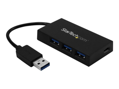 Här är ett enkelt sätt att ansluta ett större utbud av tillägg till din bärbara dator. Denna USB 3.0-hubb med 4 portar gör om din bärbara dators USB-A-port till tre USB-A-portar (5 Gbps) och en USB-C-port. Hubben är USB-driven så att du kan ansluta enheter i stort sett var du än arbetar.
