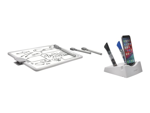 EgenskaperUpp till 50 ark säkerhetsklipp, stående/liggande läge, maxbelastning 3 kg, vikben, integrerad magnetisk whiteboard, smartphonehållare, integrerad kabelhantering, pennhållare, VESA-gränssnittsstöd