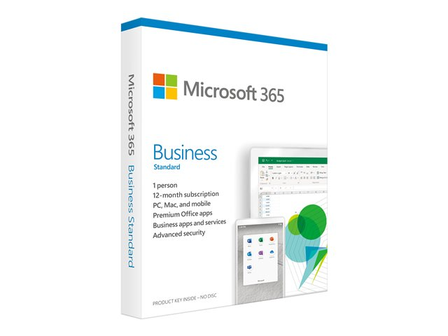 Microsoft 365 Business Standard - Boxpaket (1 år) - 1 användare (5 enheter) - medielös, P6 - Mac, Android, iOS, Win - engelska - Eurozon KLQ-00461