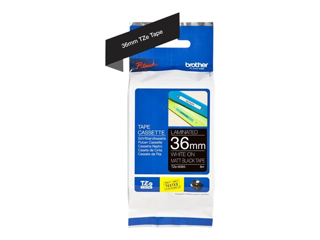 Brother TZe-M365 - Matt - lim - vitt tryck på mattsvart - Rulle 3,6 cm x 8 m) 1 kassett(er) bandlaminat - för P-Touch PT-530, PT-9200DX, PT-9200PC TZEM365