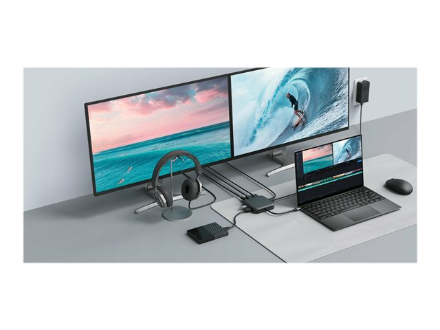 | Egenskaper | Stöd för dubbel bildskärm, USB-port med genompassering |